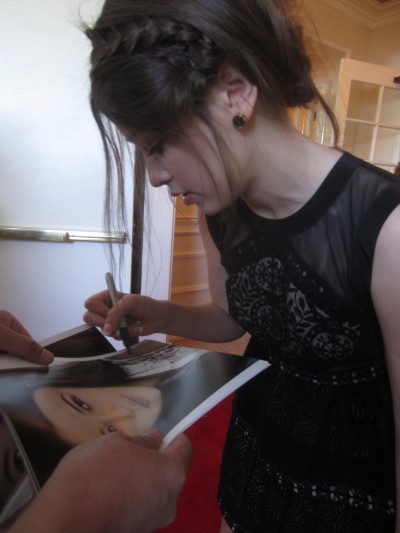 It is a photo taken during the signing of an autograph.