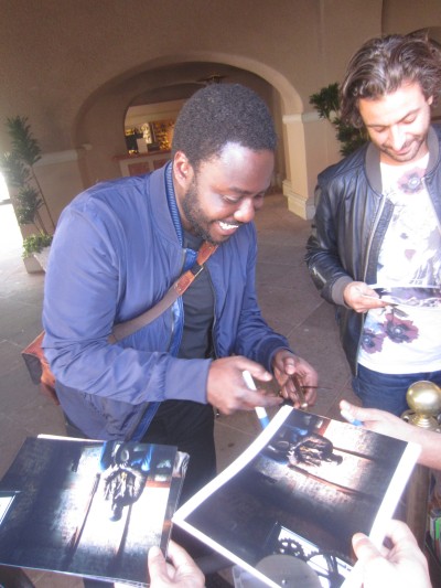 It is a photo taken during the signing of an autograph.