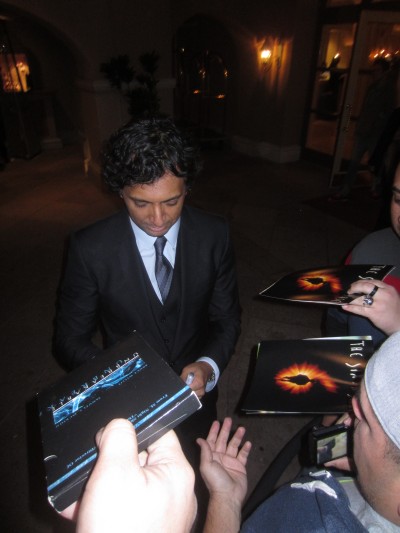 It is a photo taken during the signing of an autograph.