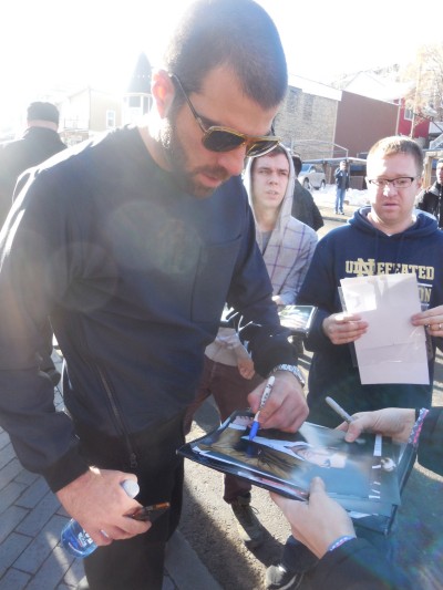 It is a photo taken during the signing of an autograph.