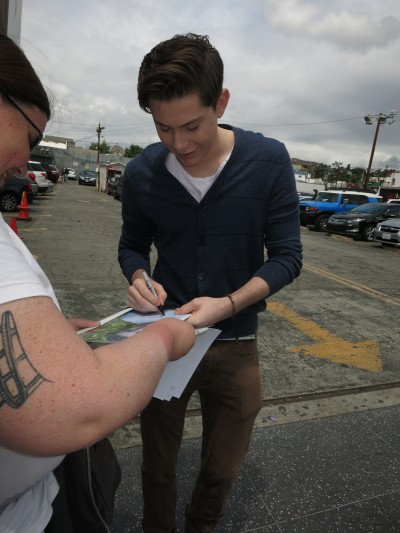 It is a photo taken during the signing of an autograph.