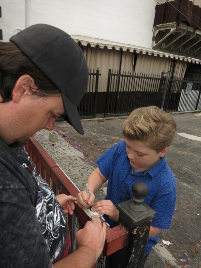 It is a photo taken during the signing of an autograph.