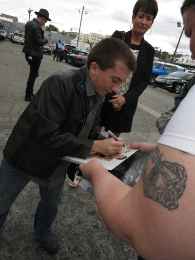 It is a photo taken during the signing of an autograph.