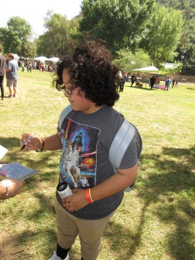 It is a photo taken during the signing of an autograph.