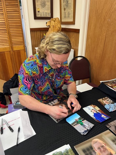 It is a photo taken during the signing of an autograph.
